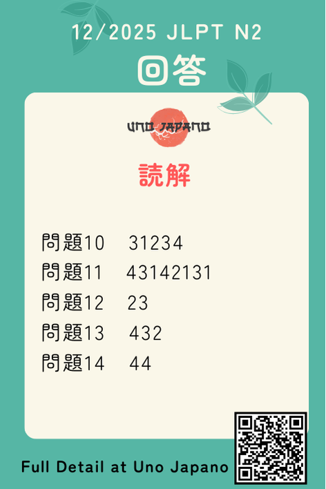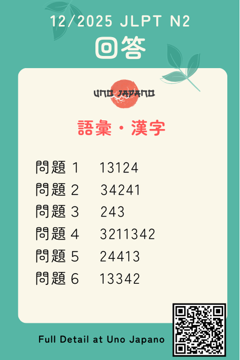 This is only for reference answer keys of JLPT N2 12/2025 【Chinese domestic JLPT】