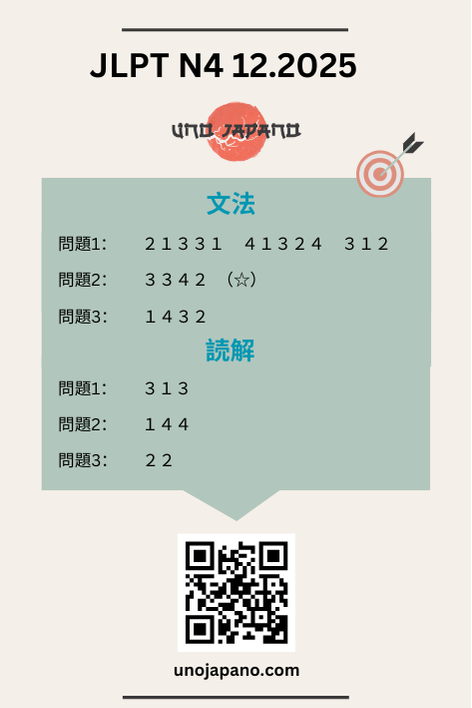 This is only for reference answers of JLPT N4 12/2025.