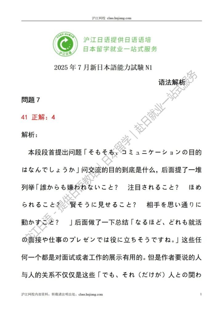 This is only for reference answers of JLPT N1 7/2025