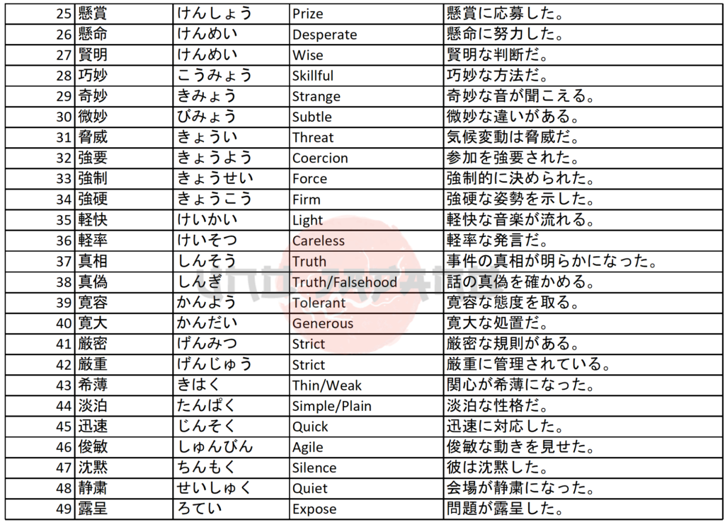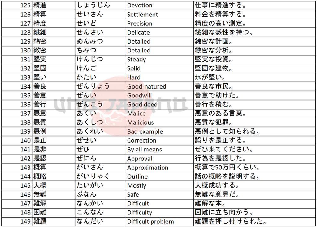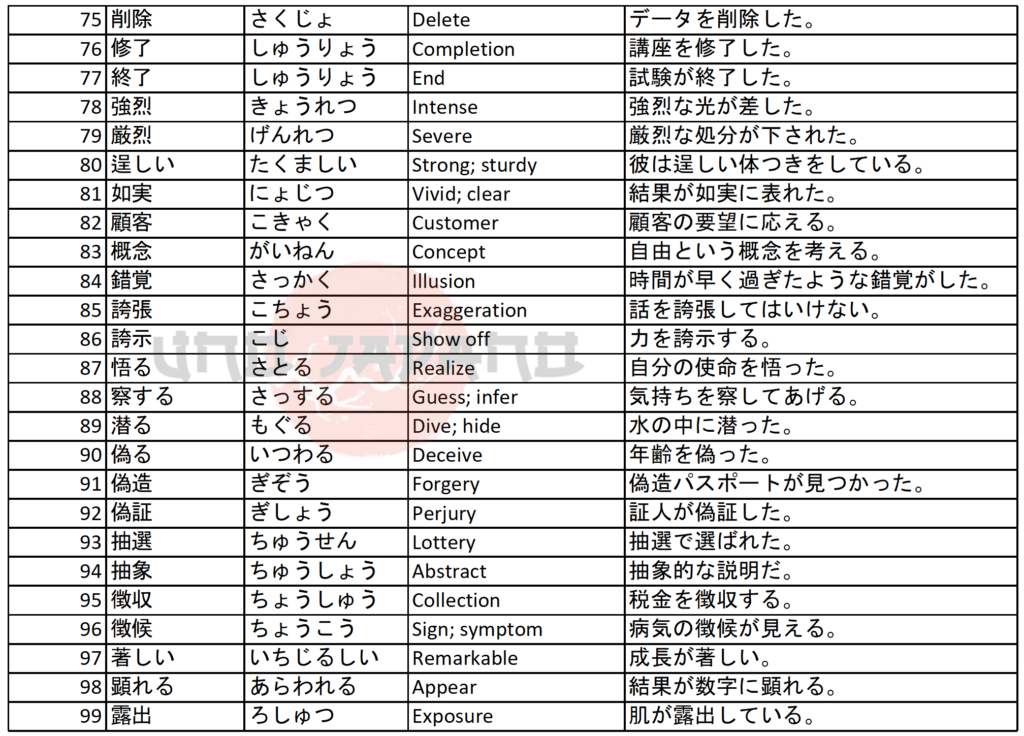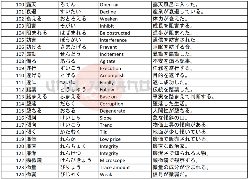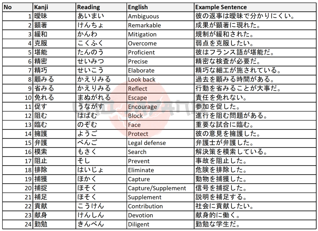 Hard Vocabulary and Kanji in JLPT N1